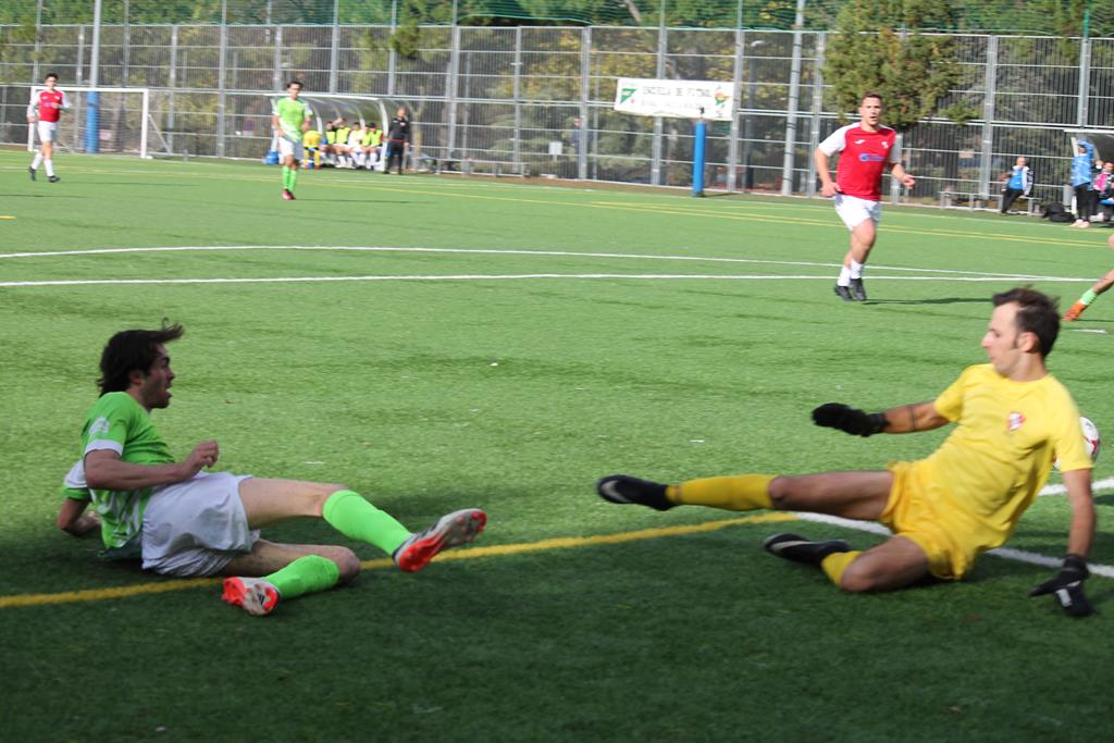 La Escuela se sobrepuso al gol encajado y empezó a mover bien el balón en el centro del campo y a llegar a las inmediaciones del área de los forasteros, pero o bien por falta de precisión o bien por no tomar decisiones adecuadas en el último pase, el gol no llegaba.