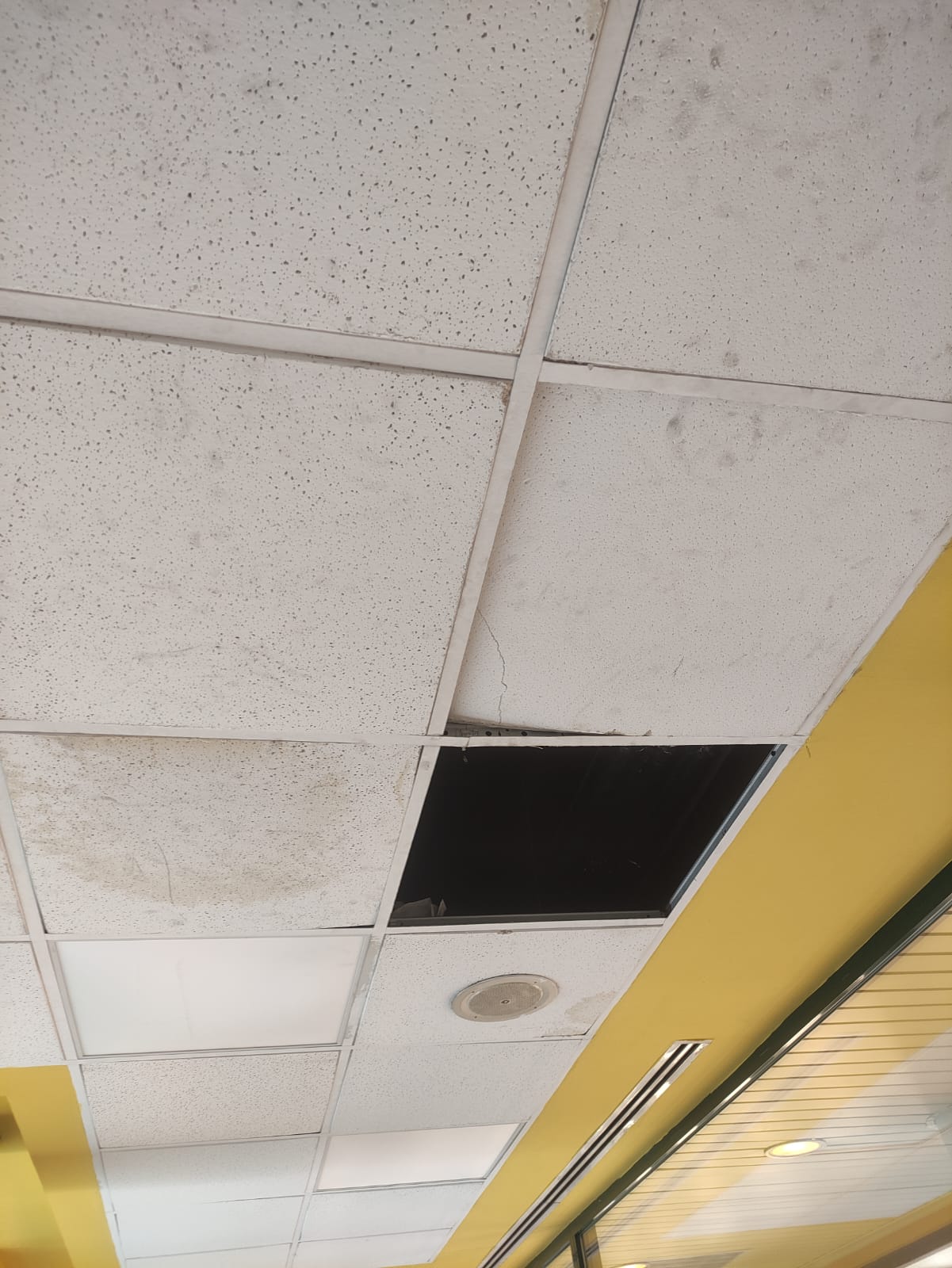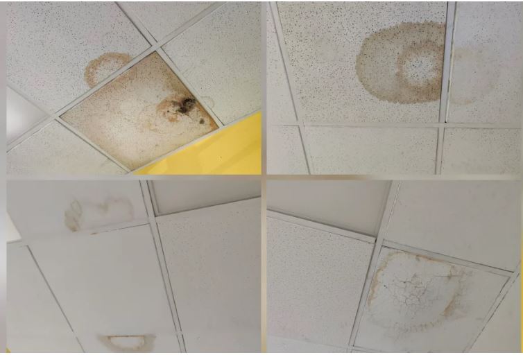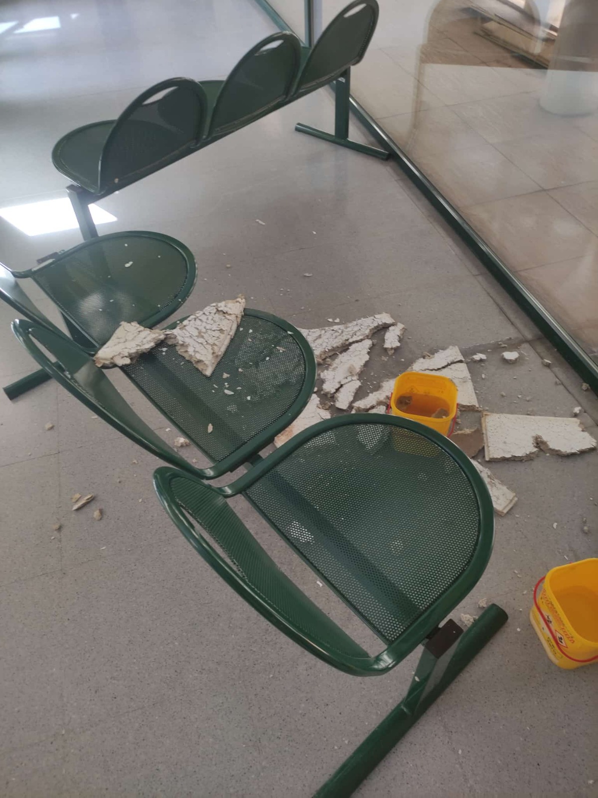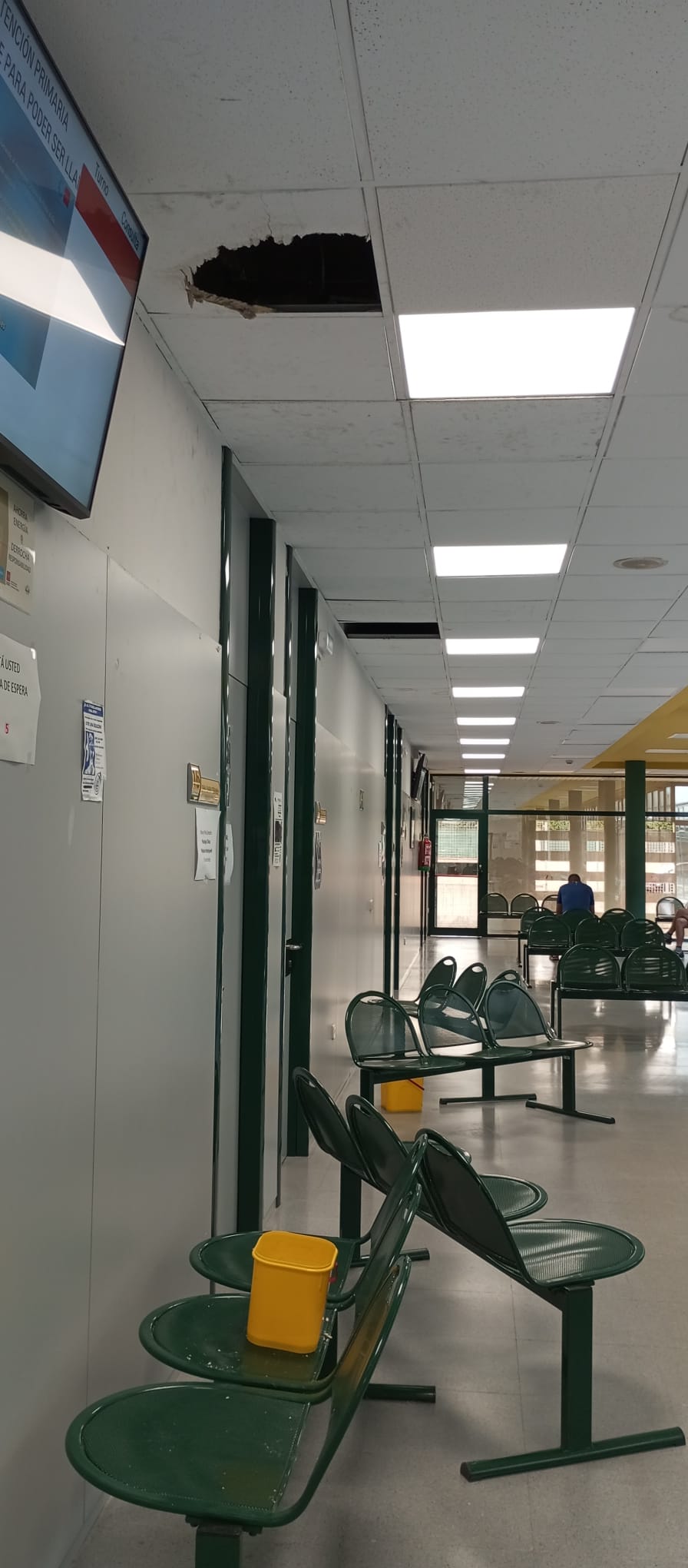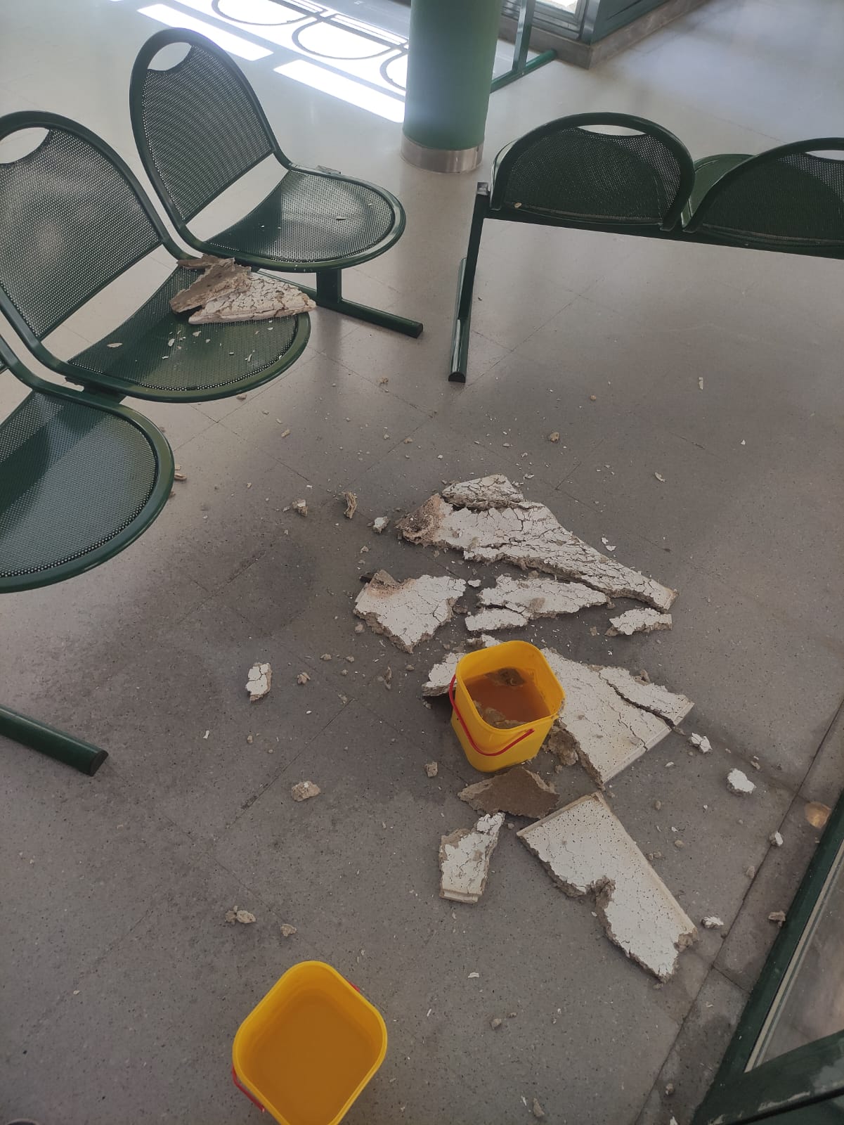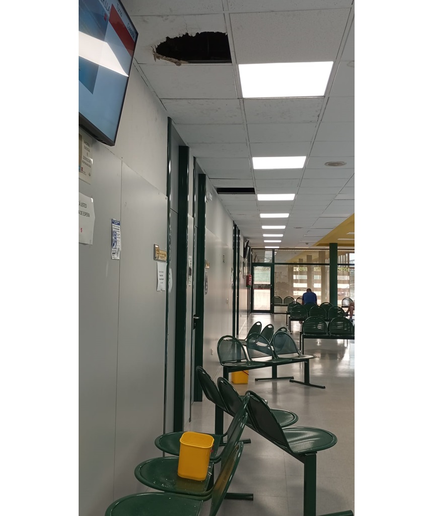 Ayer de nuevo y después de cuatro gotas se volvieron a caer los techos en el Centro de Salud Sta. Mónica.