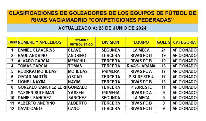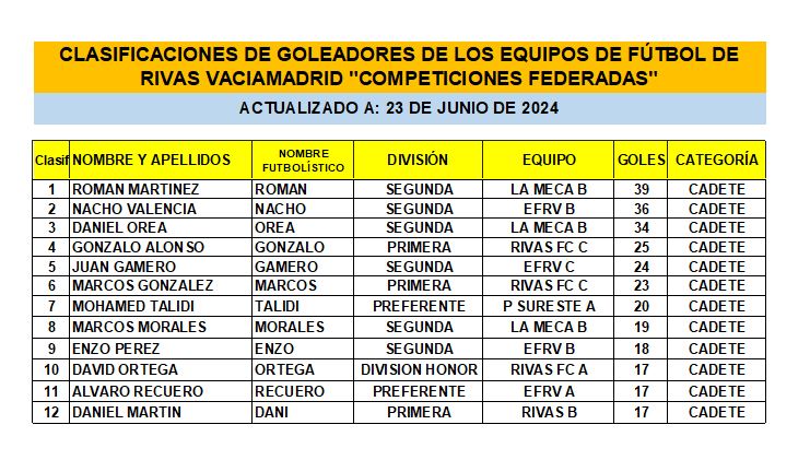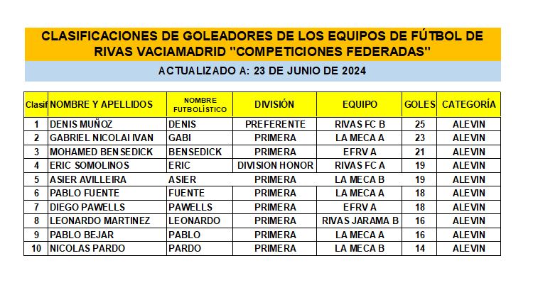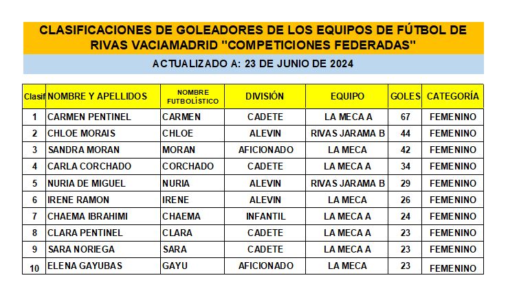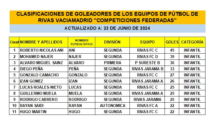 LA MECA DE RIVAS Y EL RIVAS FC SE REPARTEN LOS TÍTULOS DE MÁXIMOS GOLEADORES.