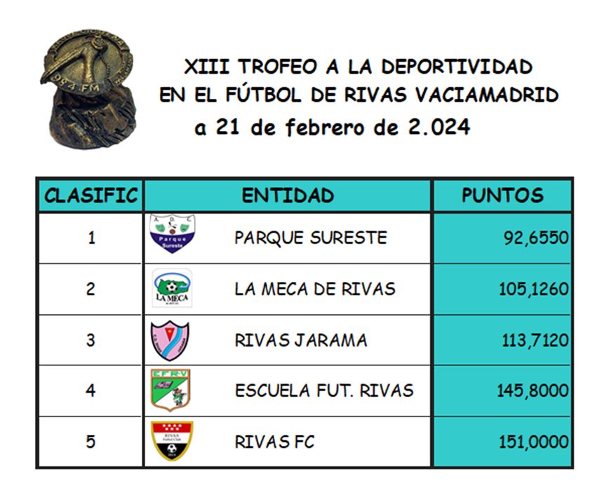- NI EL SEGUNDO CLASIFICADO RIVAS JARAMA NI EL TERCERO LA MECA DE RIVAS HAN TENIDO SANCIONES ESTA SEMANA POR LO QUE SE RECORTAN LAS DISTANCIAS CON EL LÍDER PARQUE SURESTE