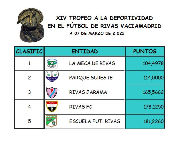 - DADO LO AJUSTADOS QUE ESTÁN LAS ÚLTIMAS PLAZAS, LA ESCUELA DE FÚTBOL CAE A LA ÚLTIMA POSICIÓN Y ES SUPERADA POR EL RIVAS FC QUE DEJA EL FAROLILLO ROJO
