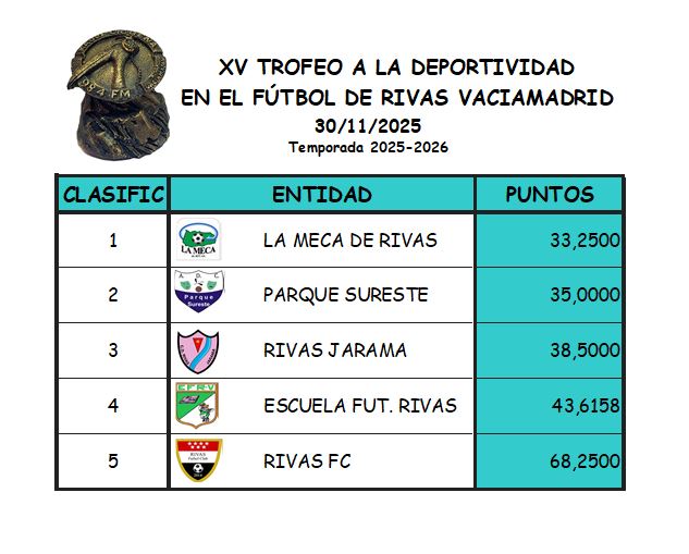 Clasificación del XV trofeo a la Deportividad Radio Cigüeña a 28-11-2