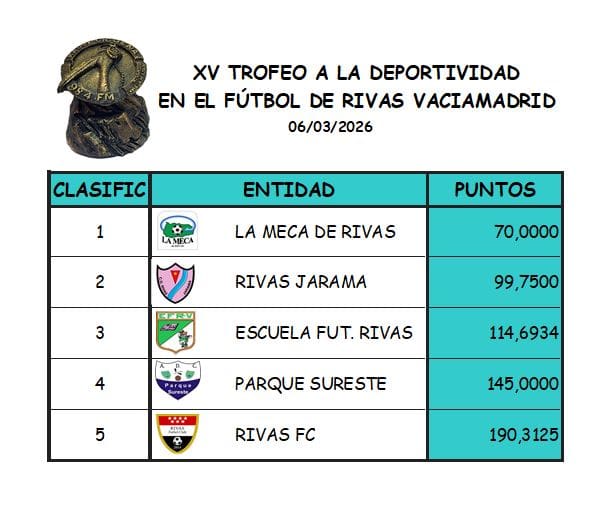 • En la última jornada el equipo líder de la clasificación, la Meca de Rivas y el colista, Rivas FC son las entidades que menos sanciones han tenido.