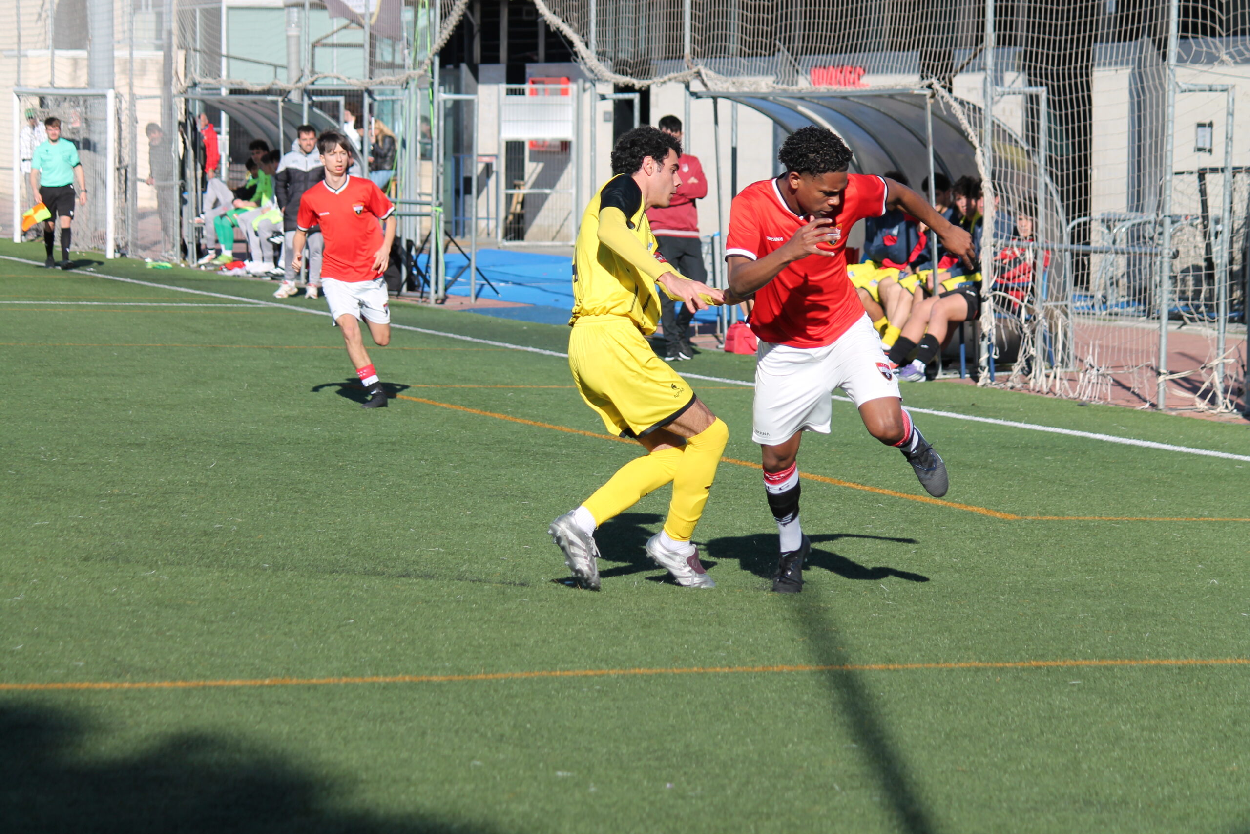 Los de Rivas llegaban por ambas bandas con Cobollo y Rubén incorporándose constantemente por los laterales en ayuda de Dani Felipe y de Díaz que trataban de servir balones a un luchador Sebas que llevaba en jaque a los defensores forasteros.