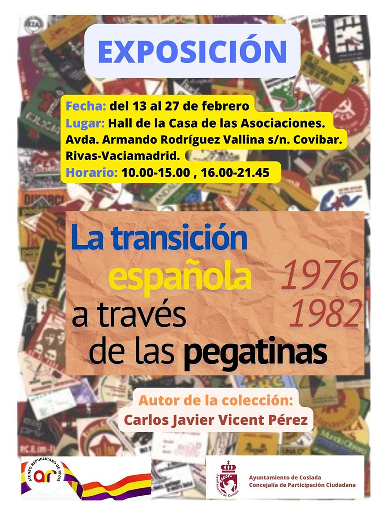 El lunes, 13 de febrero, se inaugura la exposición LA TRANSICIÓN ESPAÑOLA (1976-1982) A TRAVÉS DE LAS PEGATINAS, organizada por el Ateneo Republicano de Rivas.