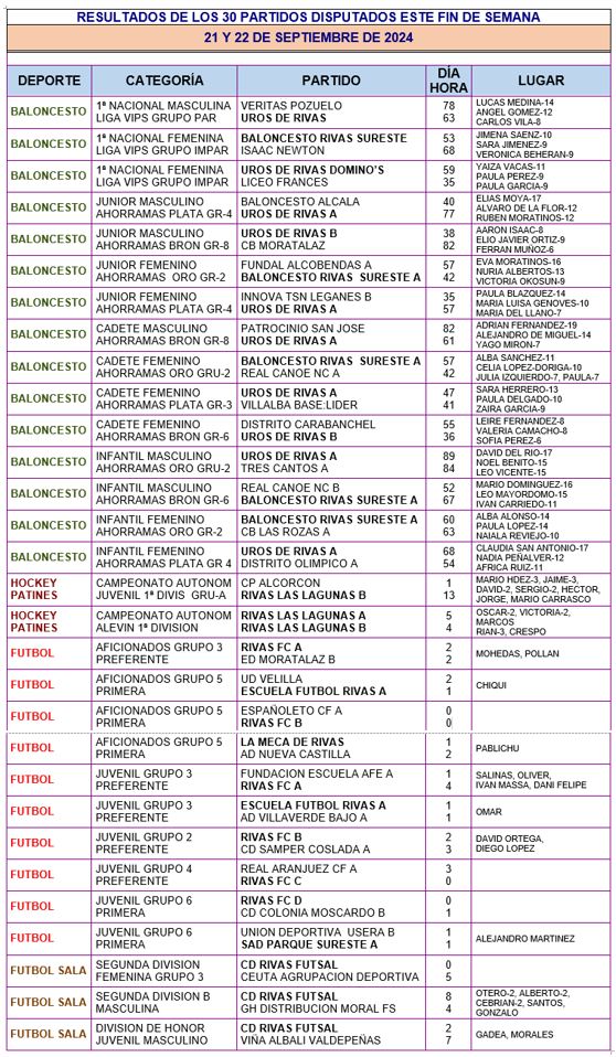 30 RESULTADOS  DE LOS PARTIDOS FEDERADOS DISPUTADOS ESTE FIN DE SEMANA (21 y 22 DE SEPTIEMBRE).